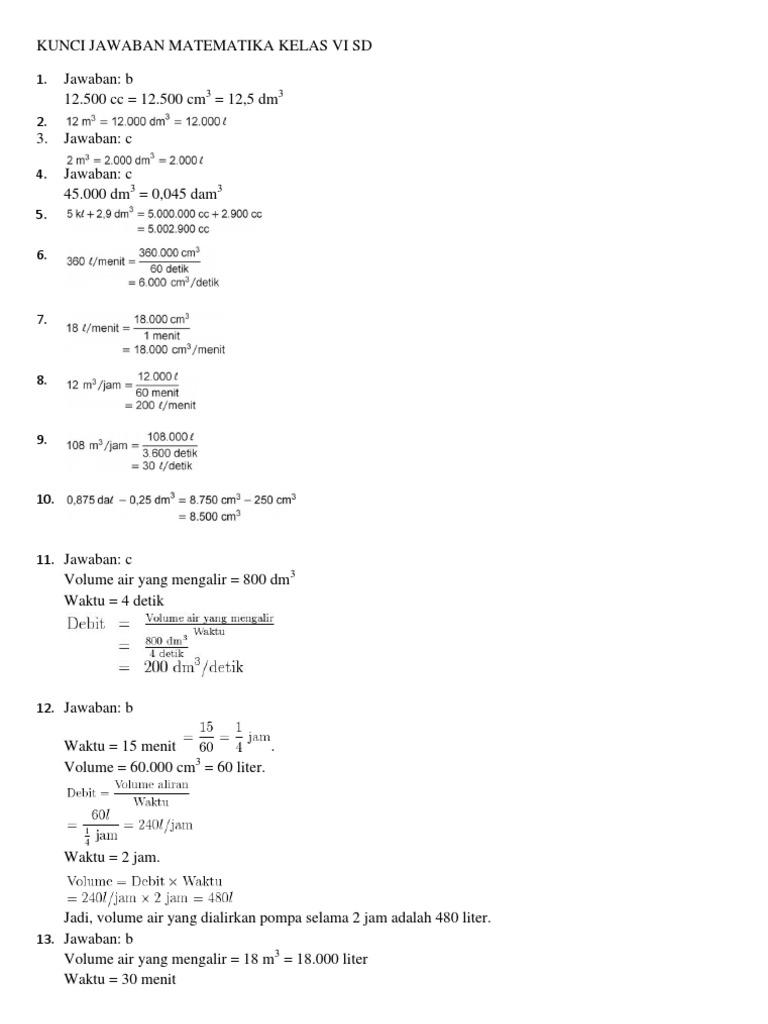Kunci jawaban matematika kelas 6 kumpulan kunci jawaban matematika yang bersumber dari soal soal pada buku senang belajar matematika sdmi 25 soal matematika kelas vi sd disertai kunci jawaban.